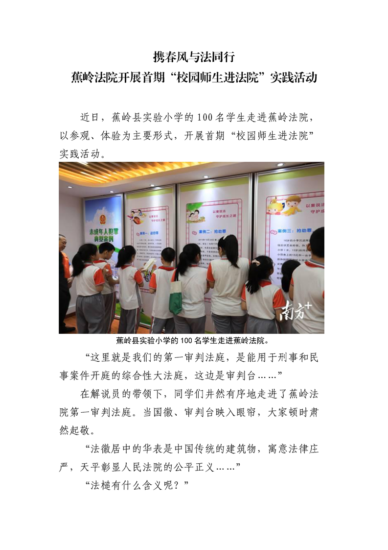 携春风与法同行︱蕉岭法院开展首期“校园师生进法院”实践活动