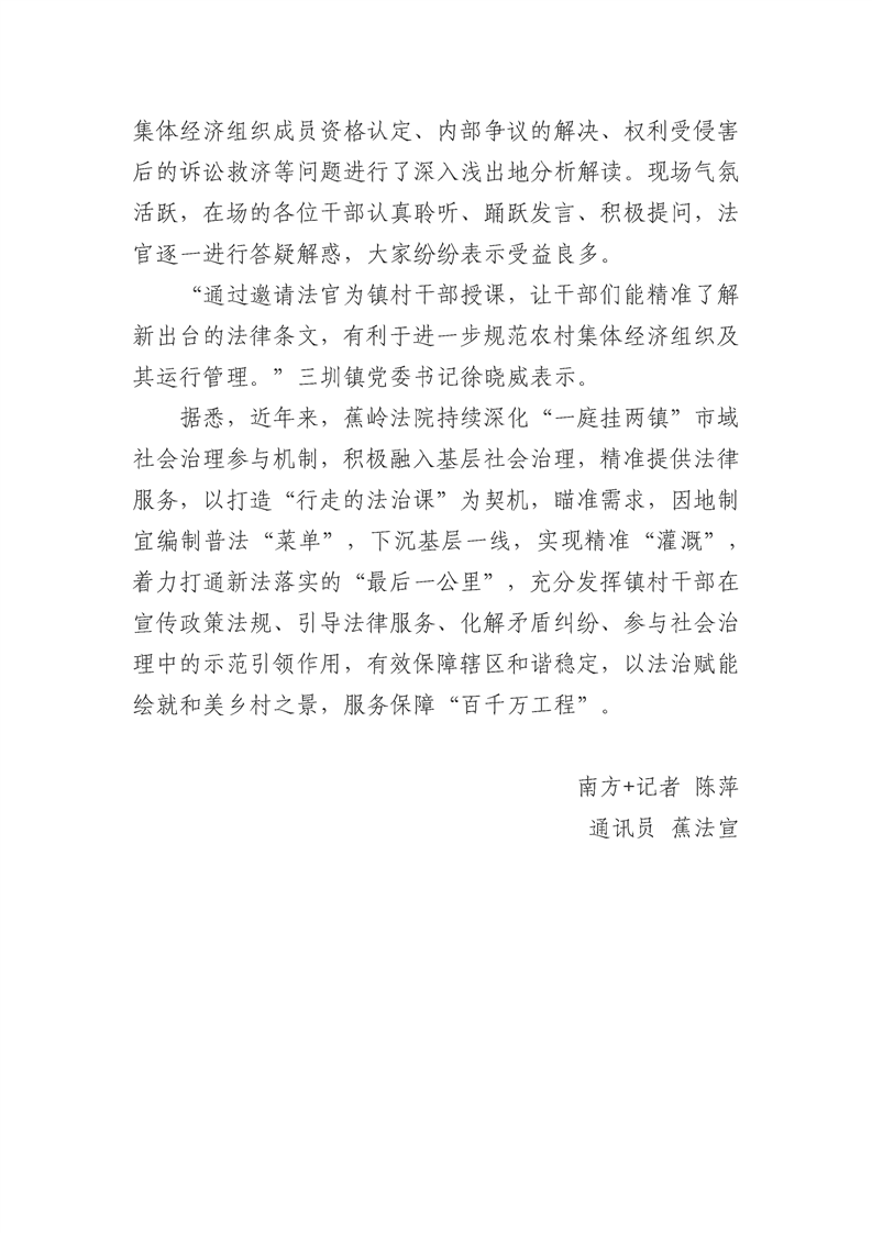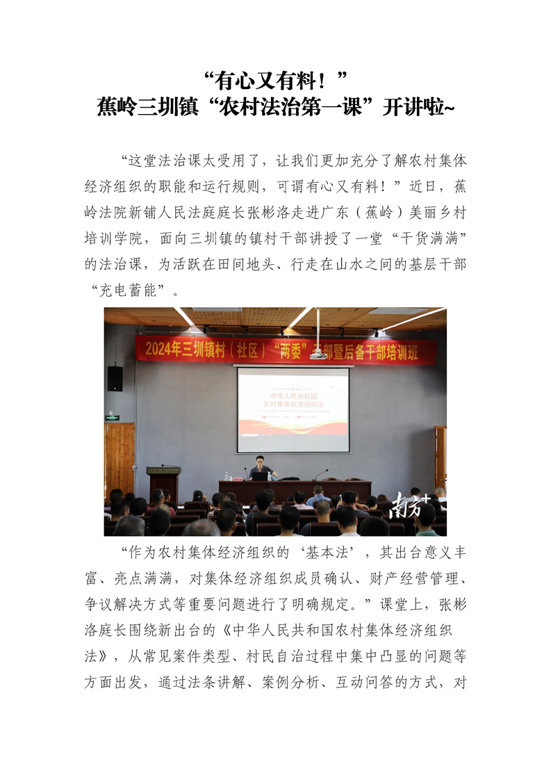 “有心又有料!”蕉岭三圳镇“农村法治第一课”开讲啦