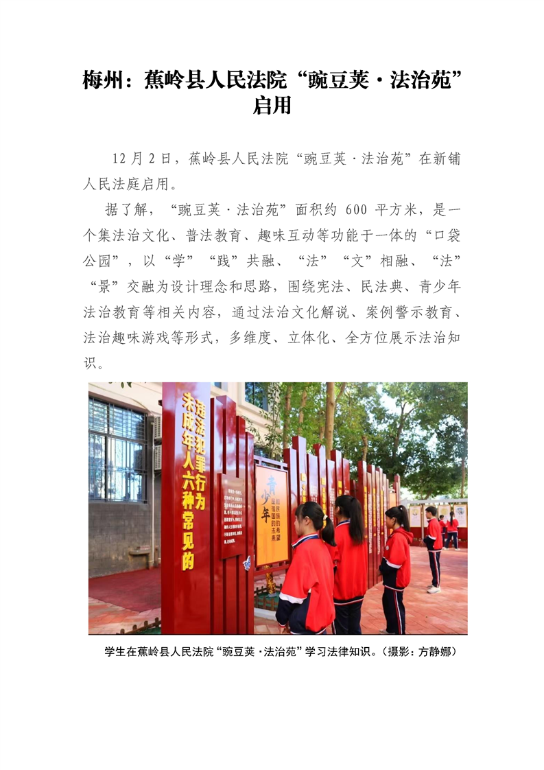 梅州:蕉岭县人民法院“豌豆荚·法治苑”启用