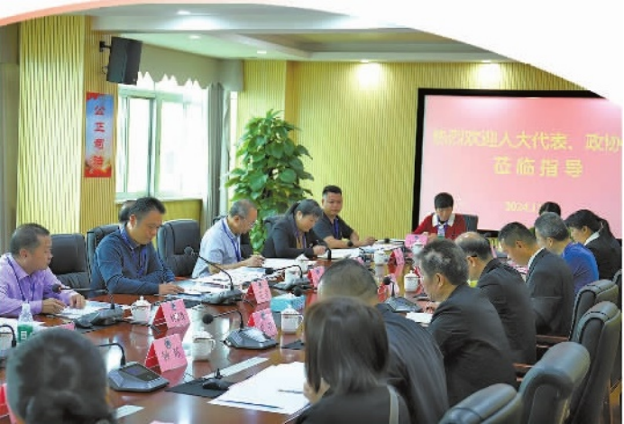 图④:代表委员听取蕉岭法院工作情况汇报,并提出意见建议。